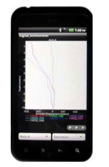 Với tính năng kết nối không dây Bluetooth tới điện thoại Smart thông qua mạng GSM/GPRS, kết quả thu nhận được hiển thị trên màn hình điện thoại dễ dàng với các số liệu và bản đồ có độ phân giải cao vi điểm đa màu sắc. Với khả năng lưu trữ lớn của điện thoại, dữ liệu được lưu trữ lớn tới hàng triệu điểm và được hiển thị tức thời so sánh với các dữ liệu trước đó( đô nghiêng trượt) thông qua hiển thị các đồ thị và dữ liệu cũng có thể được gửi đi ngay lập tức thông qua mạng GSM/GPRS.